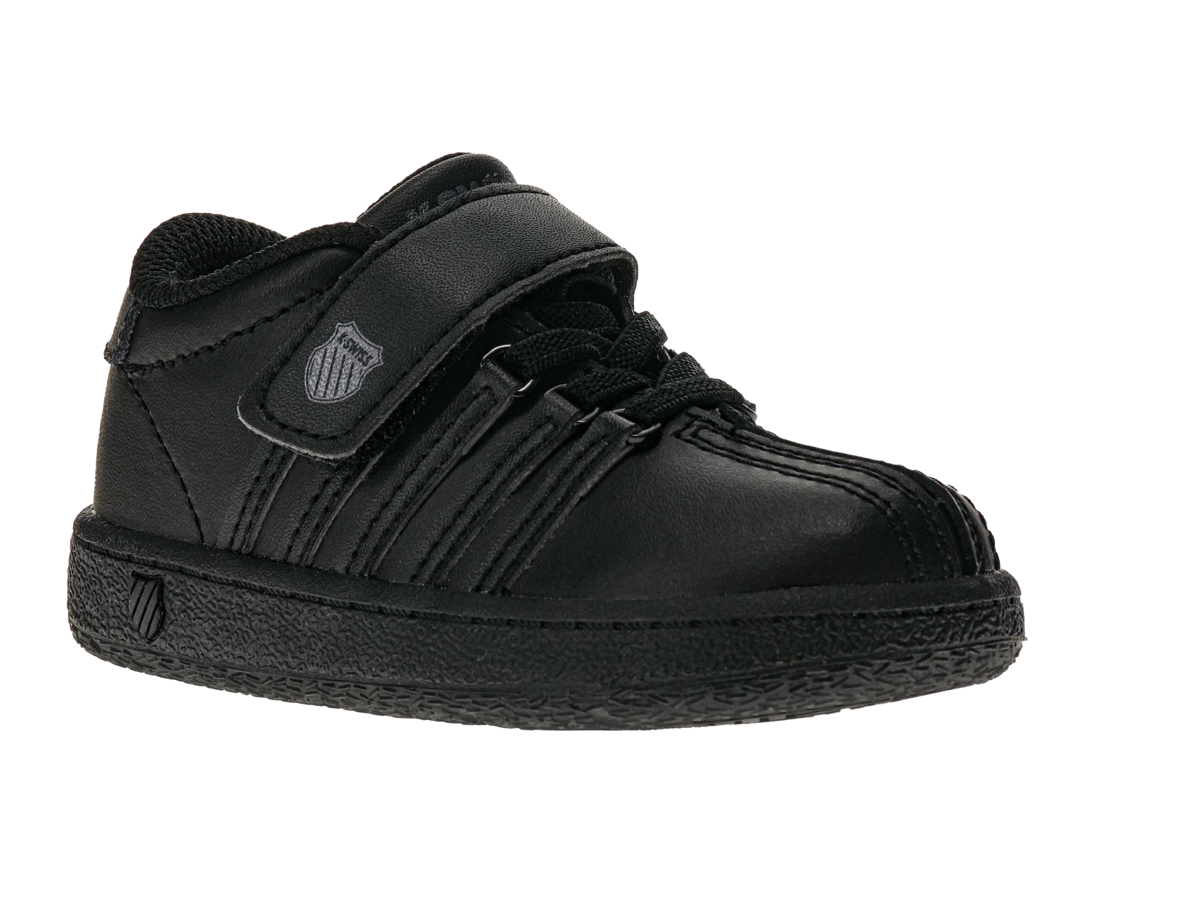 Start them young in our signature shoe; the ultimate classic. The Classic VN has been reimagined for kids of all ages with a sturdy leather upper, our classic 5 stripes and a 3-piece toe. Perfect for the playground, this classic style features metal D-rings which keep the laces in place and ensure all-day support, while a soft EVA midsole provides a comfortable fit for all-day wear. As the indisputable hero of our Classics family, the Classic VN boasts heritage, but continues to be a reliable choice for any kid. Elastic lace and velcro strap closure closure for easy foot entry.